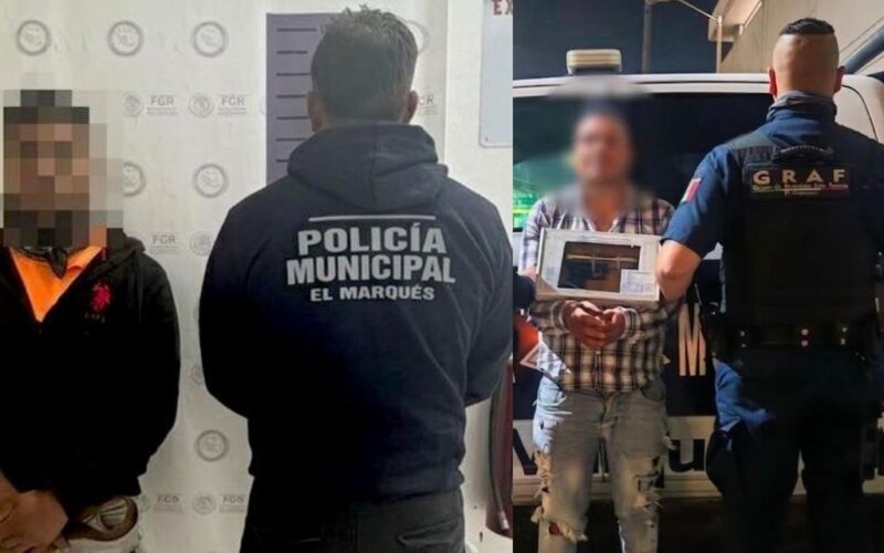 Querétaro, Qro 25 de noviembre de 2019 Elementos de la policía municipal de El Marqués aseguraron a dos personas como...