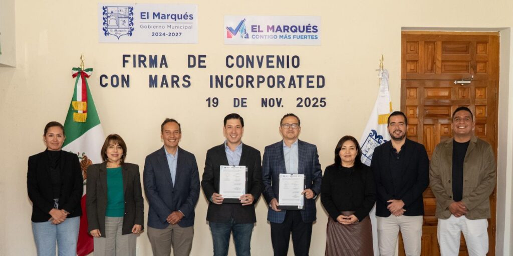 El presidente municipal de El Marqués, Rodrigo Monsalvo Castelán, encabezó la firma de un convenio de colaboración con Mars Incorporated, con el objetivo de reforzar las acciones en materia de bienestar y protección animal que impulsa el municipio.
